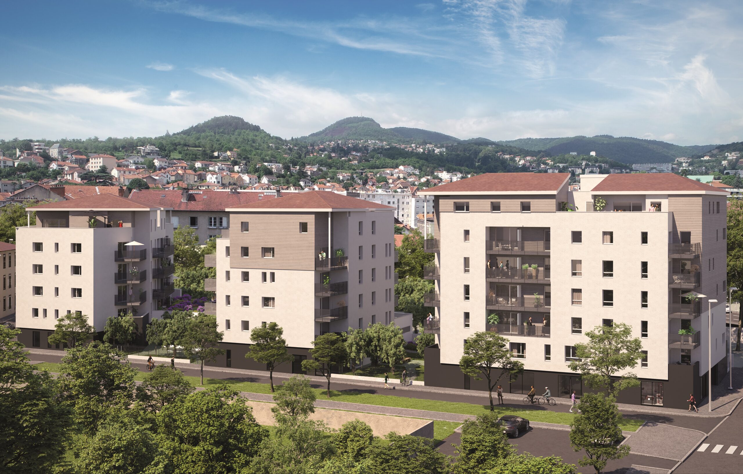 De grands appartements avec terrasses, imaginés comme des maisons sur le toit couronnent les trois volumes.